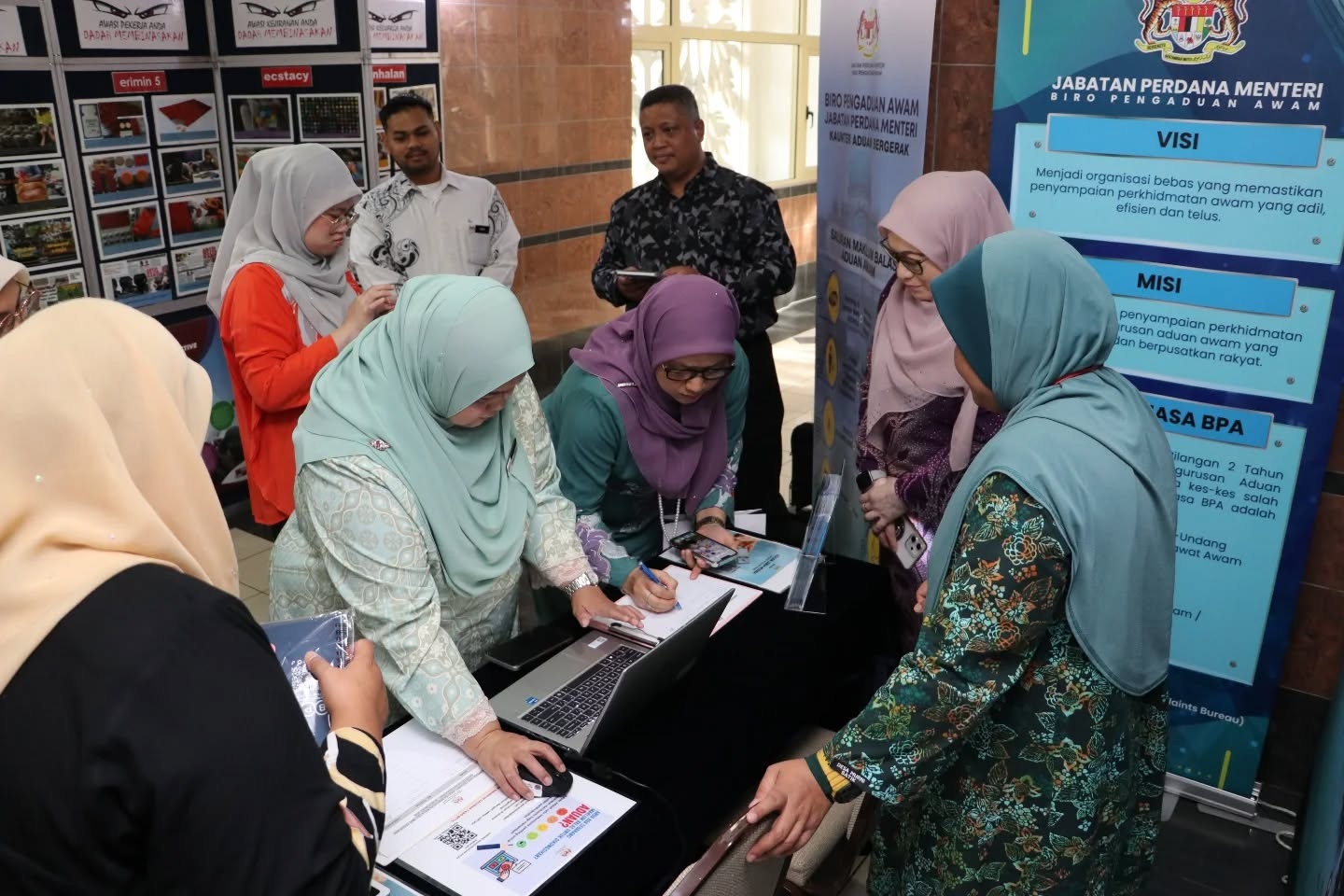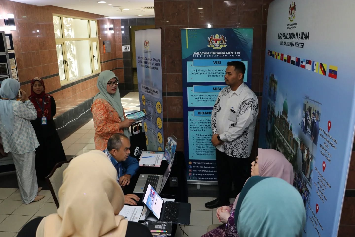 Seramai enam (6) orang kakitangan BPA, JPM yang diketuai oleh Puan Harizan binti Hussin, Ketua Penolong Pengarah Kanan, Unit Aduan 1, Bahagian Pengurusan Aduan telah hadir untuk memberikan khidmat nasihat dan memberi maklum balas kepada pengunjung. Agensi-agensi lain turut hadir ke reruai BPA bagi mendapatkan info berkaitan fungsi dan peranan BPA dalam mengendalikan aduan.